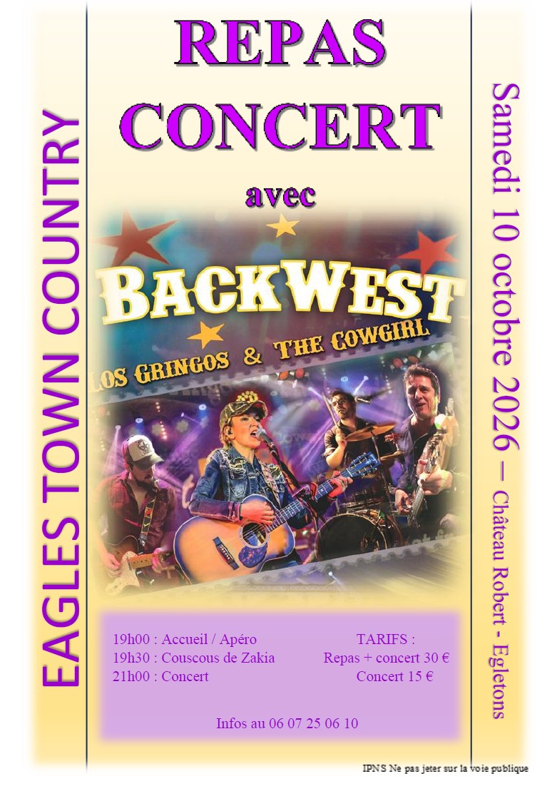 Repas concert avec le groupe des Backwest le 10 octobre 2026
